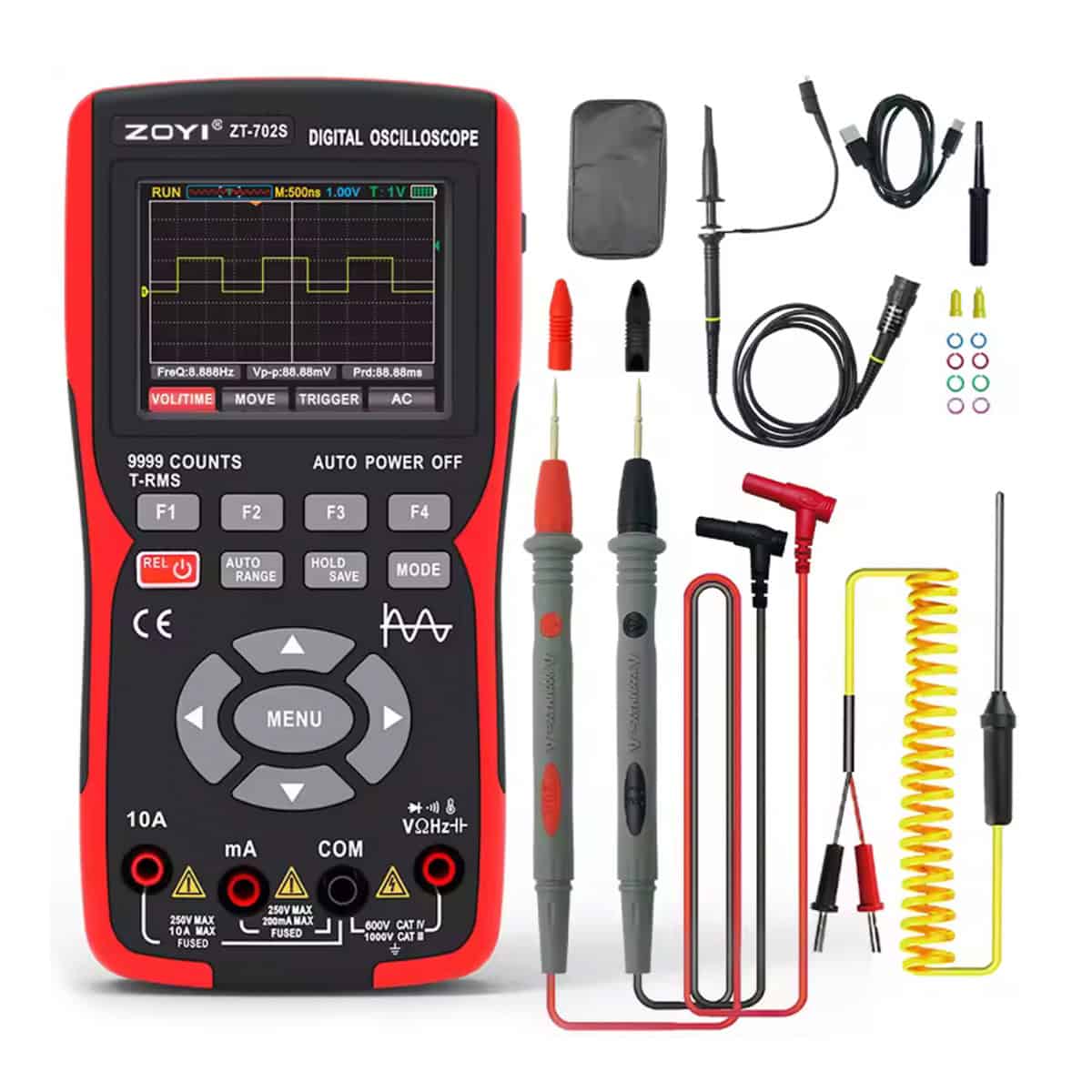 - Inclusief een basale 3V/1 KHz blokgolf uitgang voor kalibratie of eenvoudige circuit tests.