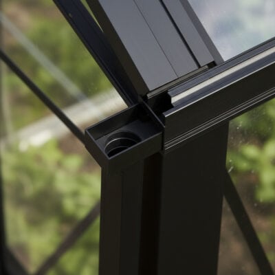 Onze hoogwaardige muurkassen worden standaard geleverd in het stijlvolle RAL9005 (mat zwart) – een moderne, tijdloze kleur die in elke tuin tot zijn recht komt. Maar waarom stoppen bij standaard, als je jouw kas helemaal naar eigen smaak kunt customizen?