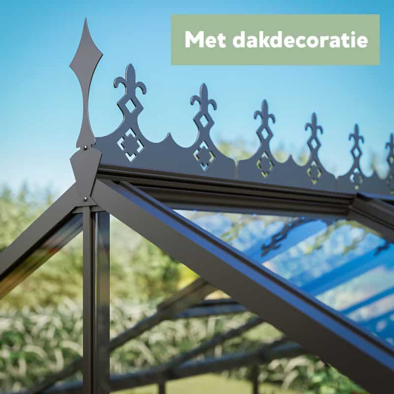 Geef je kas net dat beetje extra flair met onze decoratieve dakdecoratie. Prachtige sierlijke details – deze eyecatcher zorgt voor karakter en een unieke look. Ze maken de daklijn nét wat spannender en brengen een vleugje nostalgie in je tuin.