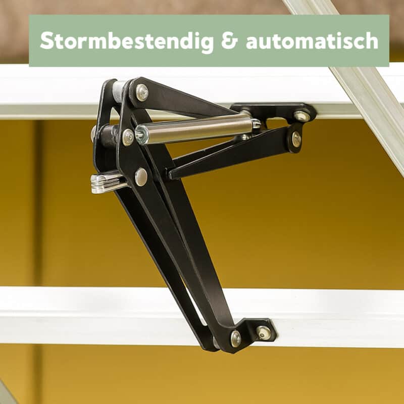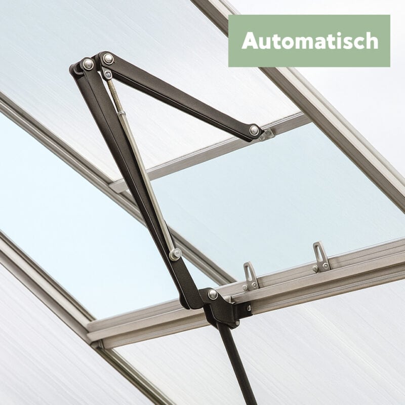 Onze premium aluminium kassen worden geleverd met standaard dakramen. Je kunt ze upgraden naar automatische dakramen die reageren op de omgevingstemperatuur.