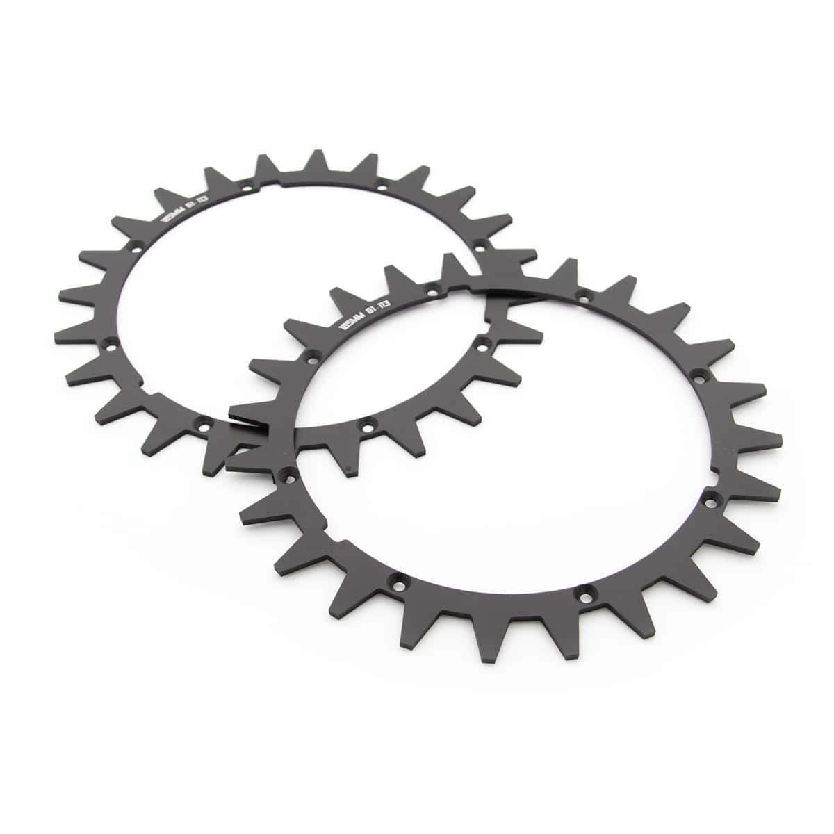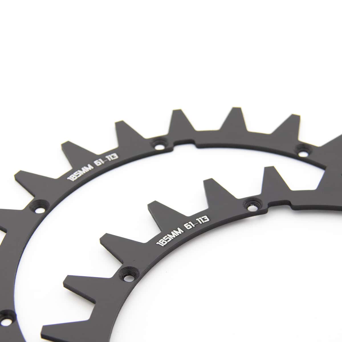 De montage is snel en eenvoudig. De spikes worden in het midden uitgelijnd en met de meegeleverde roestvrijstalen schroeven op het bestaande wiel geschroefd.