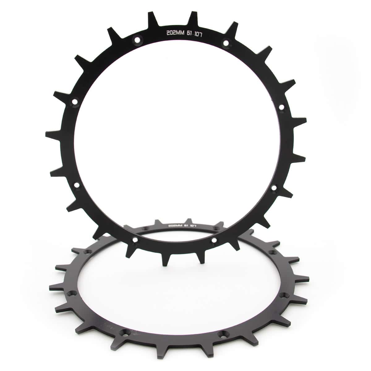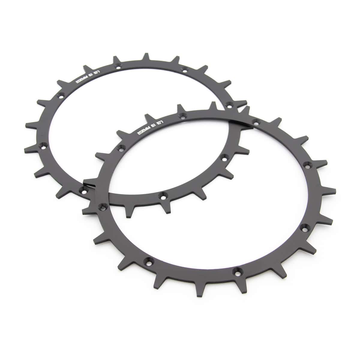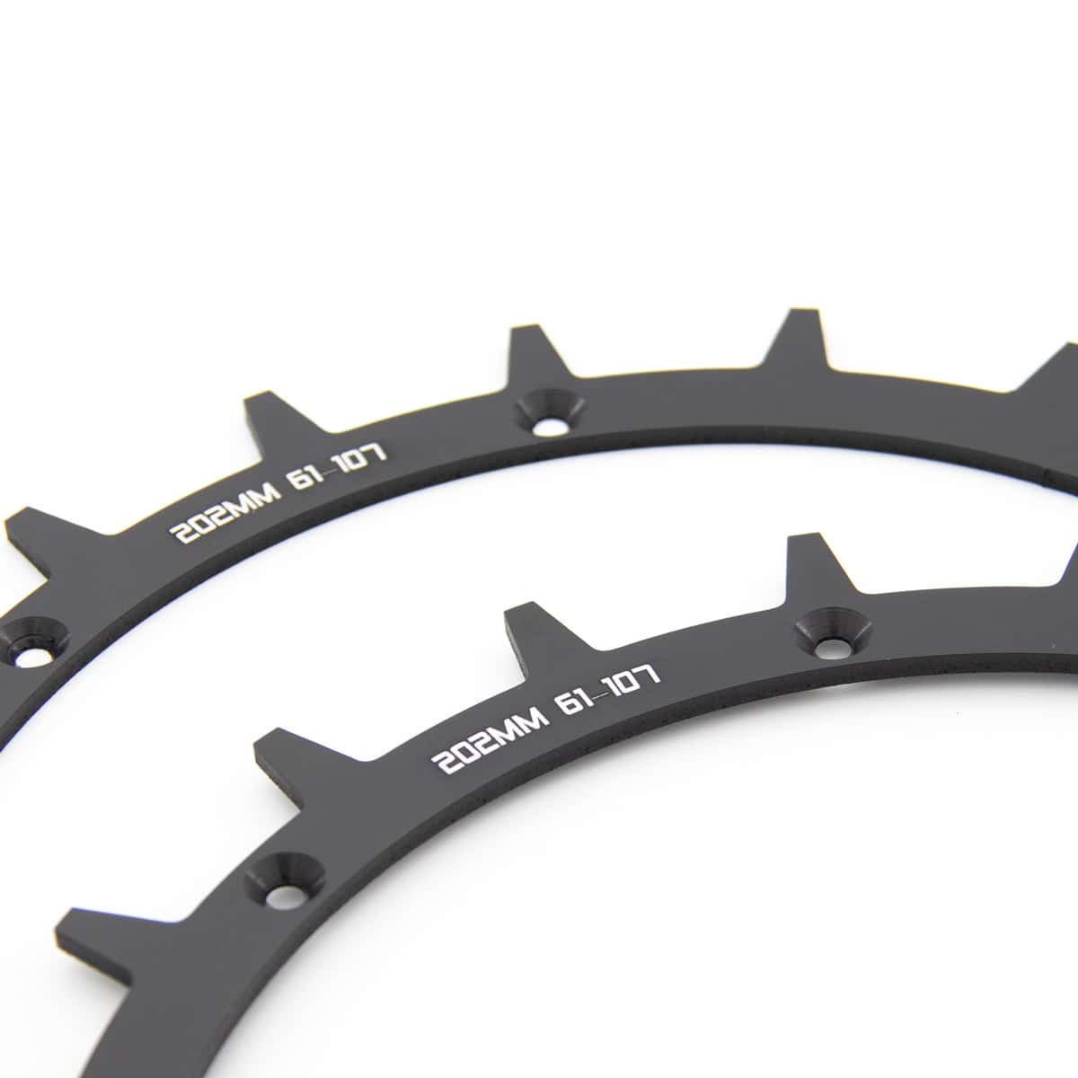 De montage is snel en eenvoudig. De spikes worden in het midden uitgelijnd en met de meegeleverde roestvrijstalen schroeven op het bestaande wiel geschroefd.